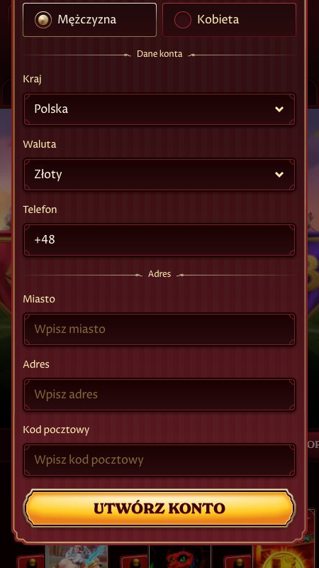 W prawym górnym rogu na stronie kasyna kliknij przycisk “Zarejestruj”, którym otworzysz formularz rejestracyjny.