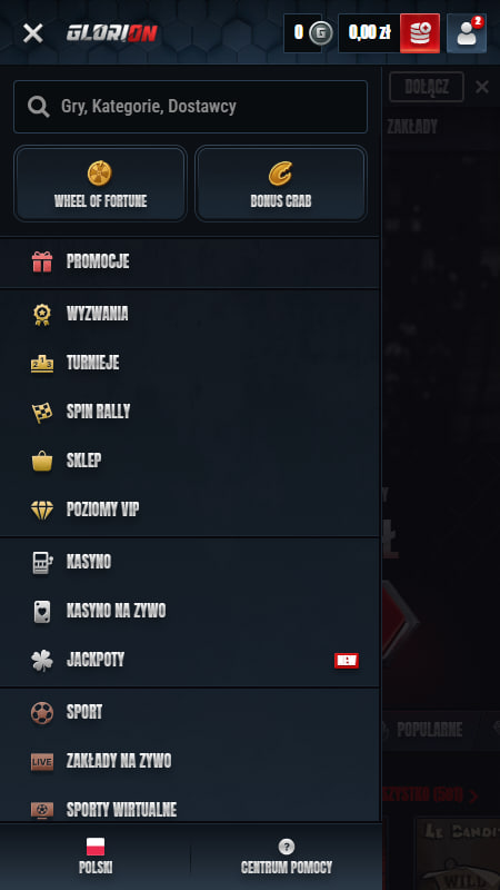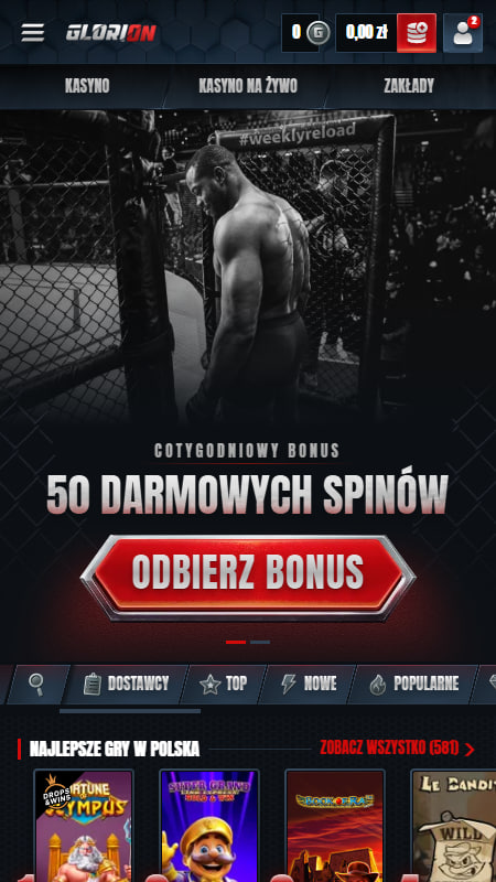 Szczerze mówiąc, strona kasyna Glorion wygląda dość schematycznie, jak setki innych serwisów z grami hazardowymi. To pewnego rodzaju plus, gdyż popularny układ strony gwarantuje wysoką intuicyjność. Dodatkowo witryna jest w pełni przetłumaczona na język polski. Ani razu nie natknęliśmy się na żadne błędy ani problemy techniczne, co dobrze świadczy o jakości i dużym skupieniu operatora na każdym detalu.