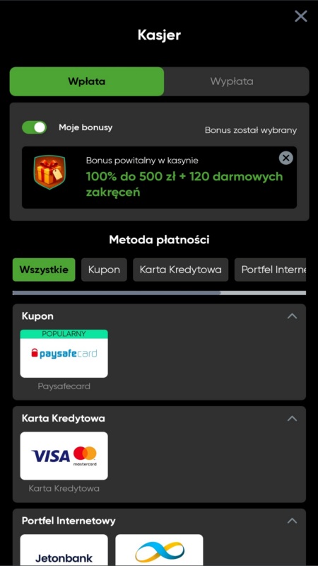 | 🎁 Bonus powitalny | 100% do 500 zł + 120 darmowych spinów |