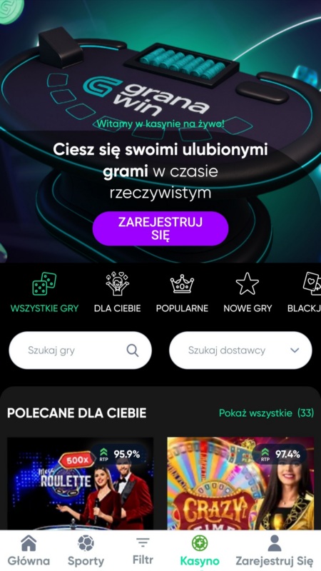 Wydawać się mogło, że przy tak rozbudowanej sekcji ze slotami cierpieć będą inne rodzaje gier. Nic bardziej mylnego. Kasyno GranaWin oferuje bowiem ponad 250 gier stołowych i aż ponad 800 gier błyskawicznych. W pierwszej sekcji znajdziesz ruletki, blackjacki, bakaraty, pokery i kości. Wśród gier błyskawicznych na wyróżnienie zasługuje Aviator, ale także różne warianty Plinko, Mines oraz zdrapki online.