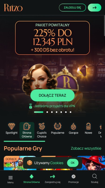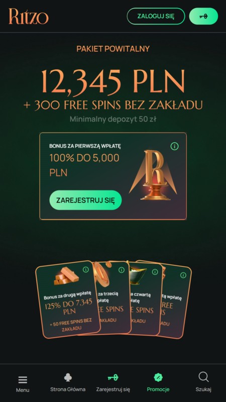 Ritzo Casino łączy wszystko to, czego szukają gracze. Wysoki pakiet powitalny o wartości nawet 12345 złotych i 300 darmowych spinów, z których wygrane nie są objęte obrotem, to prawdziwa wisienka na torcie. Do tego dochodzą codzienne promocje, doładowania BLIKIEM oraz wypłaty w maksymalnie 24 godziny.