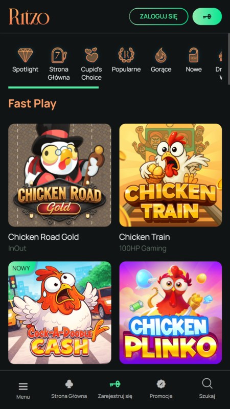 Ponad 200 tytułów zawiera sekcja z grami crash, które na potrzeby kasyna zostały nazwane “Fast Play”. Wśród nich znajdziesz kilka wariantów Chicken Road, Aviatora od Spribe, kilkanaście rodzajów Plinko, a do tego Mines, zdrapki online, Keno oraz Bingo.