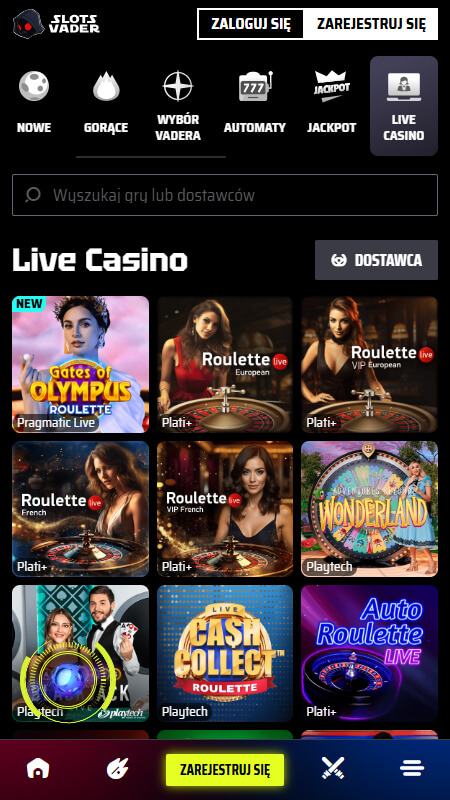 SlotsVader Casino proponuje sloty, gry stołowe, gry crash oraz gry na żywo. Łącznie znajdziesz ponad różnych 7500 gier.