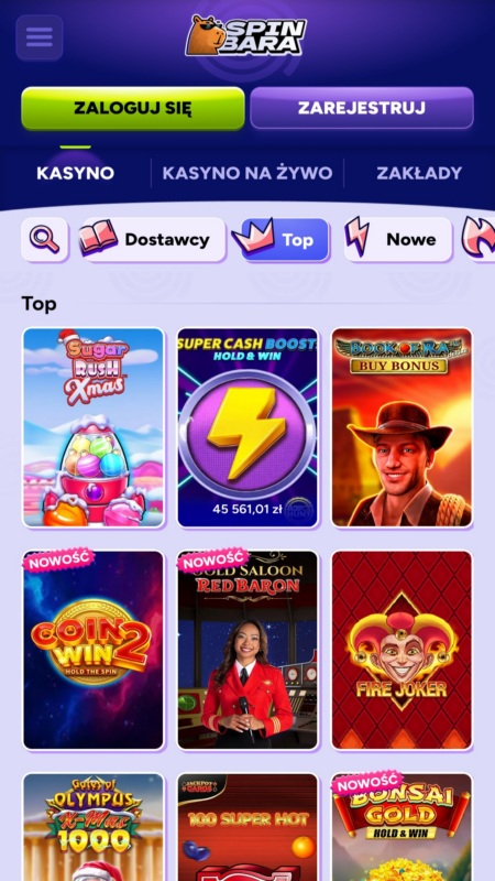 Wybór gier jest możliwy z wykorzystaniem podstawowych kategorii, ale też sekcji takich, jak chociażby jackpoty, megaways, popularne, ekskluzywne oraz nowe. Możesz też oznaczać ulubione gry, wyświetlać je według konkretnego dostawcy oraz wyszukiwać po nazwie. Można żałować, że Spinbara nie udostępniło wersji demonstracyjnej dla żadnej z gier.