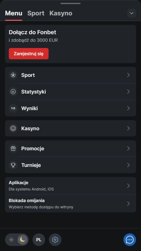 Standardowo Fonbet bazuje na przyjemnym dla oka ciemnym motywie, który w połączeniu z jasnymi czcionkami zapewnia pełną przejrzystość. Strona bukmachera została przygotowana również w języku polskim. Wybór zakładów jest możliwy na wiele sposobów. To podział nie tylko według sportów i rozgrywek, ale także polecane i popularne wydarzenia. Dodatkowo możesz oznaczać ulubione sporty, rozgrywki, drużyny, a nawet i rynki bukmacherskie.