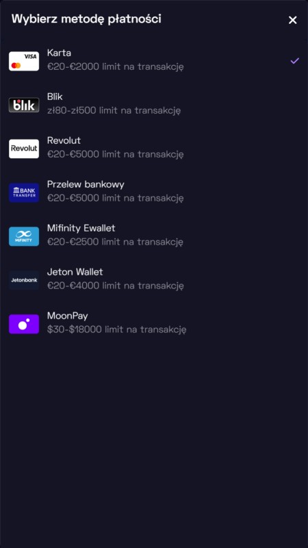 | Revolut | od 20$ | natychmiast | brak | od 25$ | brak | do 72 godzin |