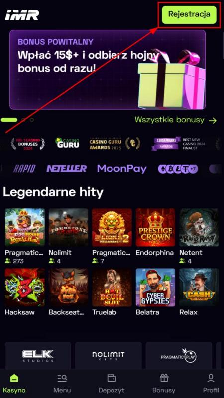 Witryna uruchamia się bezpośrednio w oknie przeglądarki, zapewniając dostęp do pełnej oferty zakładów, płatności i bonusów. Ładuje się w niej nawet dedykowane przyklejone menu, w którym znajdziesz skróty do kluczowych sekcji, włącznie z możliwością szybkiego doładowania konta.