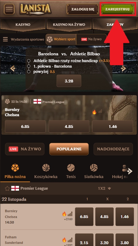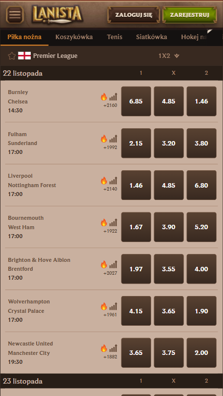 Bukmacher Lanista nie oferuje jednak zakładów na Futsal Ekstraklasę, KSW oraz Fame MMA.