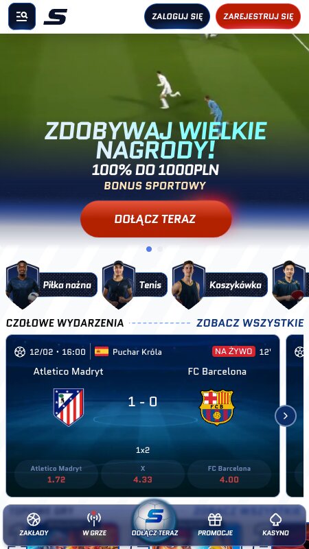 Tak, bowiem to licencjonowany i uczciwy bukmacher. Charakteryzują go doładowania BLIKIEM, szeroka oferta zakładów oraz atrakcyjne kursy dla większości popularnych dyscyplin. Do tego dochodzi świetna optymalizacja mobilna i codzienne promocje.