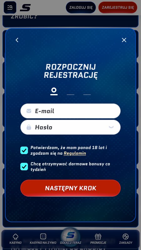 Kliknij “Zarejestruj się”, a zostaniesz automatycznie zalogowany do bukmachera.